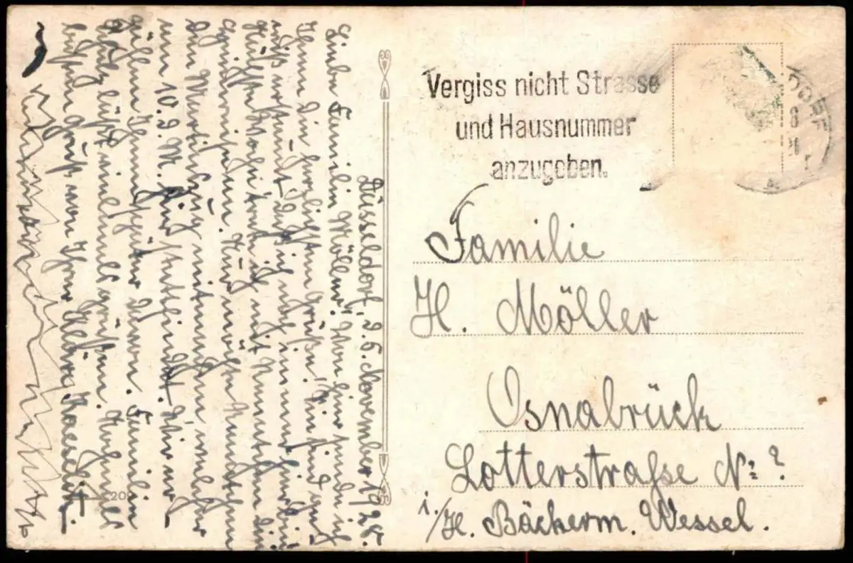 Gelaufen: 06.11.1928 mit Stempel Düsseldorf nach Osnabrück, Briefmarke (sauber) entferntErhaltung (s. Scan): gut, Ecken minimal bestoßen / 915994