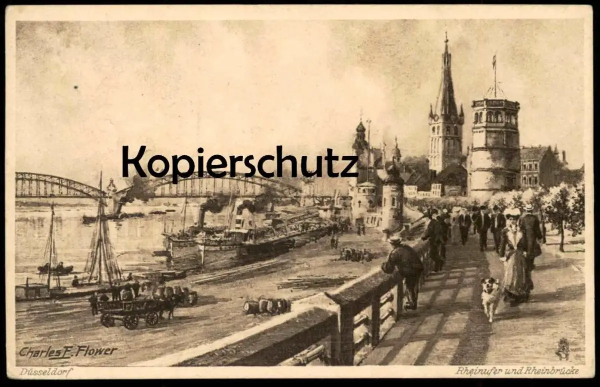 ALTE POSTKARTE DÜSSELDORF RHEINUFER OILETTE RAPHAEL TUCK POSTCARD SERIE No.1634 KÜNSTLER CHARLES F. FLOWER postcard cpa