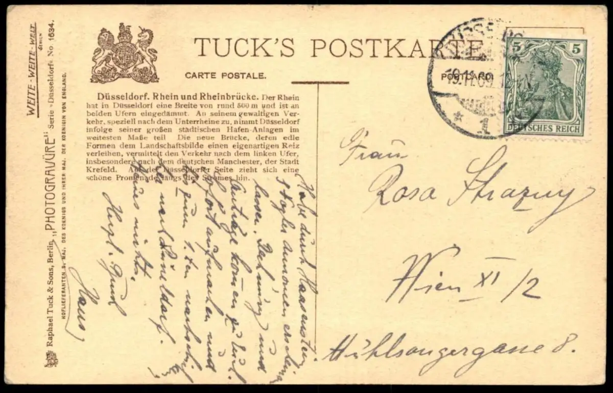 Gelaufen: 19.11.1909 mit Stempel Düsseldorf nach WienErhaltung (s. Scan): gut / 916290