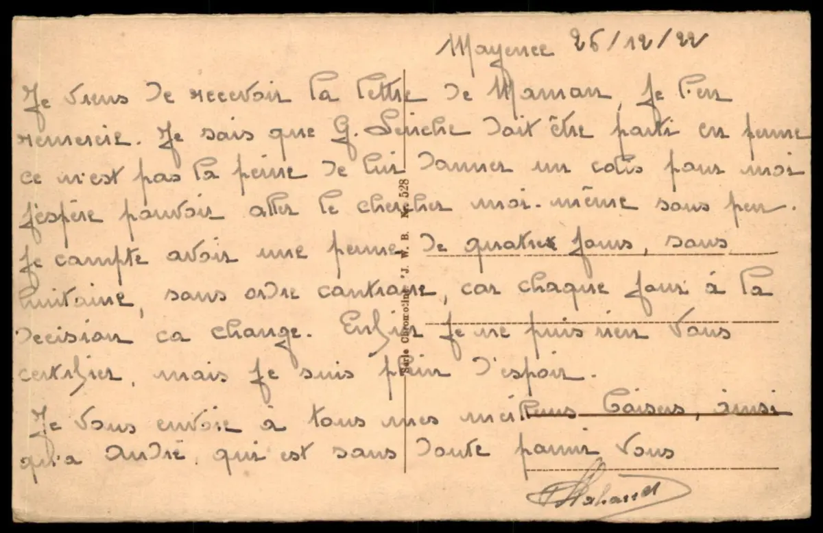 Gelaufen: nein, beschrieben Mayence / Mainz 26.12.1922