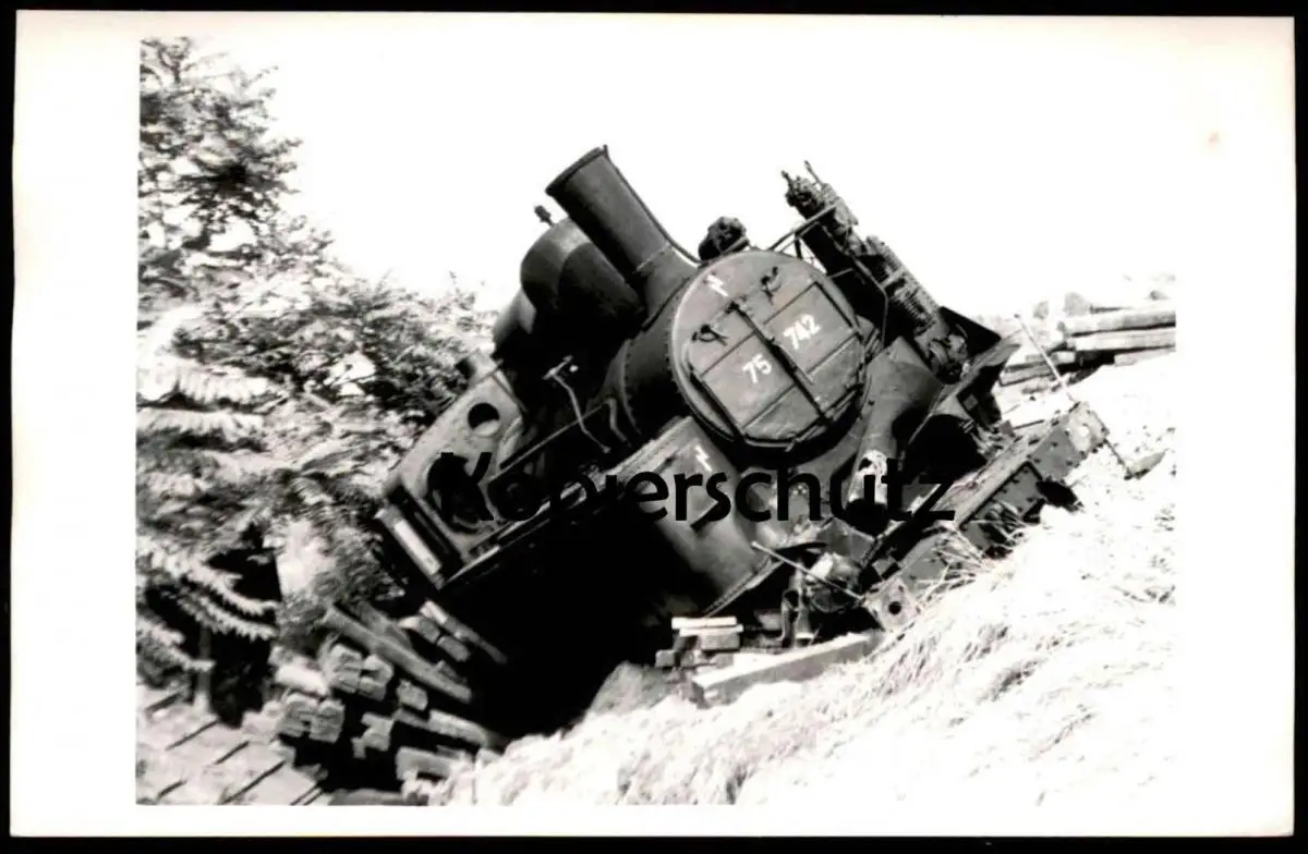 ALTE ORIGINAL POSTKARTE EISENBAHN-UNGLÜCK BBÖ DAMPFLOK 75 742 IN BÖSCHUNG MÖGLICHERWEISE 1919 LAA THAYA ? Lokbild Archiv Helmut GrieblVerlag: unbekannt, echte Photographie