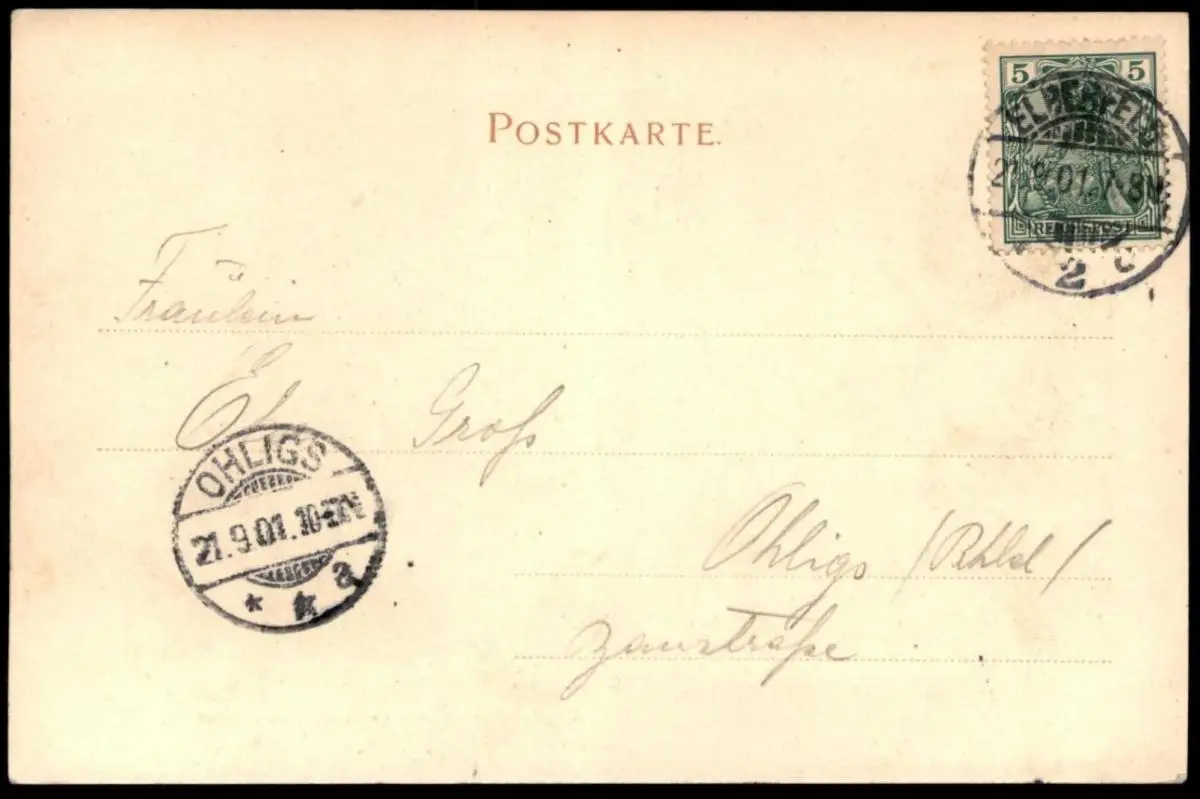 Verlag: M. Wipperling, ElberfeldGelaufen: 21.09.1907 mit Stempel Elberfeld nach Ohligs