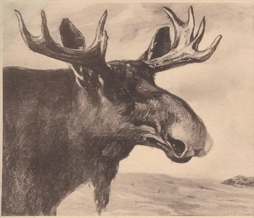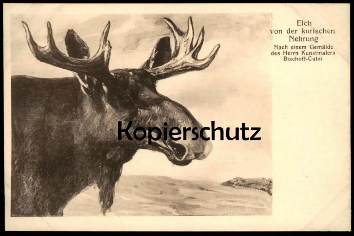 ALTE POSTKARTE ELCH VON DER KURISCHEN NEHRUNG NACH EINEM GEMÄLDE DES HERRN KUNSTMALERS BISCHOFF-CULM elk moose kurische