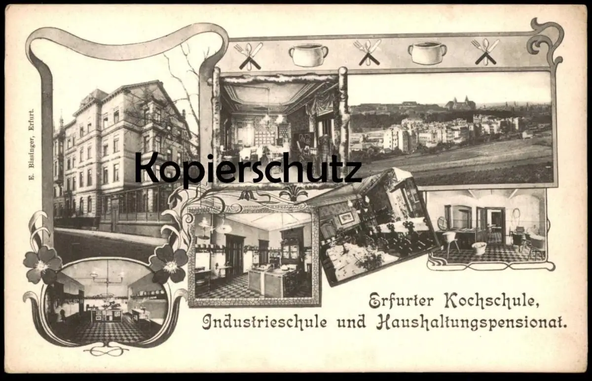 ALTE POSTKARTE ERFURTER KOCHSCHULE INDUSTRIESCHULE UND HAUSHALTUNGSPENSIONATVerlag: E. Bissinger, Erfurt