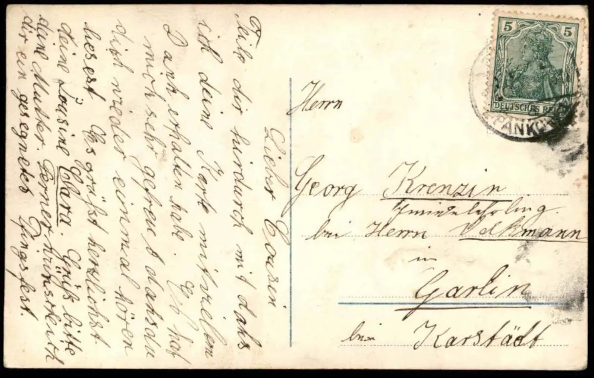 Gelaufen: xx.xx.1916 mit Stempel Berlin Pankow nach Garlin bei Karstädt