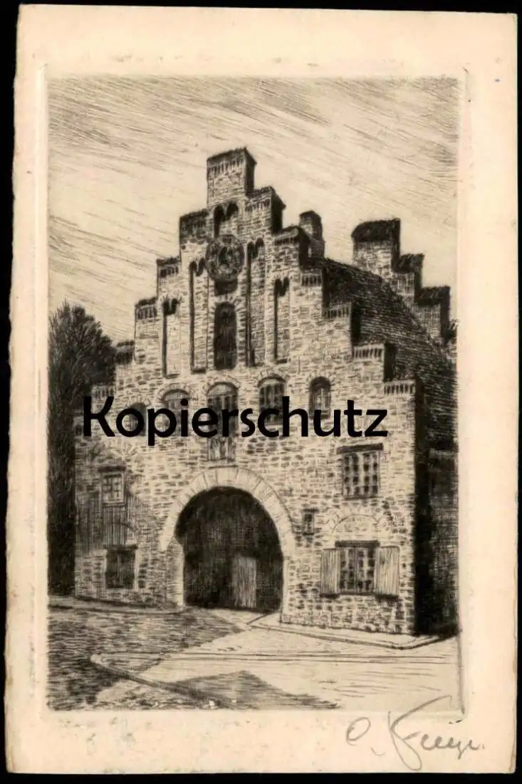 ALTE POSTKARTE FLENSBURG NORDERTOR ORIGINAL RADIERUNG HANDABZUG SIGNIERT CARL FLEEGE Ansichtskarte AK cpa postcard