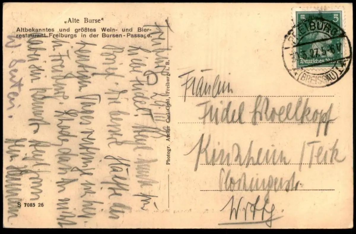 Gelaufen: 30.03.1927 mit Stempel Freiburg nach Kirchheim TeckErhaltung (s. Scan): gut / 915597