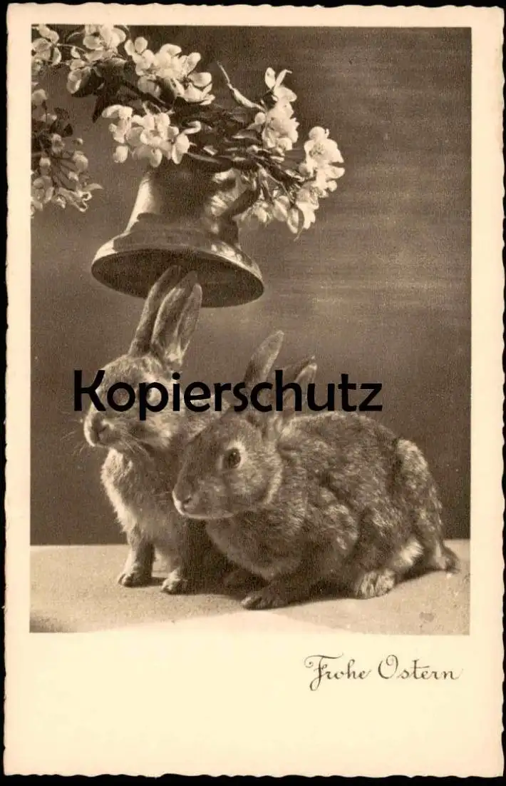 ALTE POSTKARTE FROHE OSTERN KANINCHEN GLOCKE Ostern Easter Hasen Schwarz-Weiss Foto Photo rabbit lapin AK cpa postcard