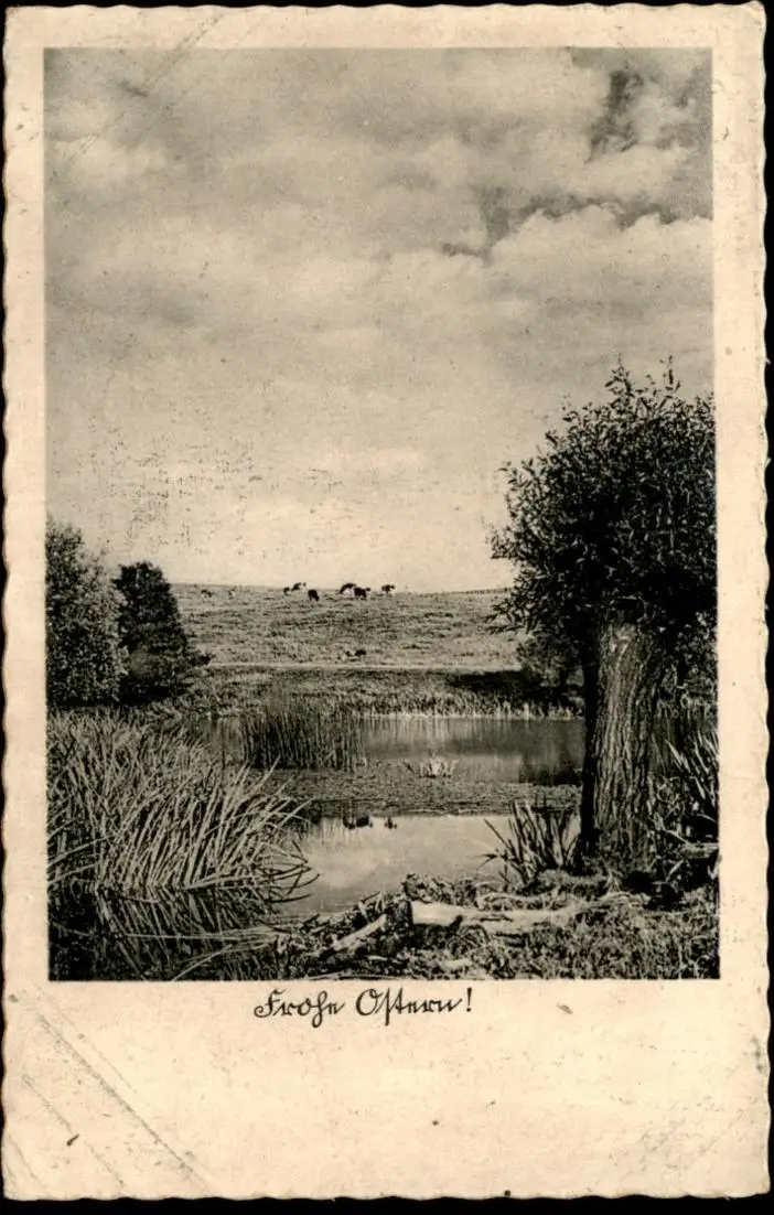 ALTE POSTKARTE FROHE OSTERN TEICH WEIDE KÜHE LANDSCHAFT FELDPOST 1941 happy easter cpa postcard AK Ansichtskarte
