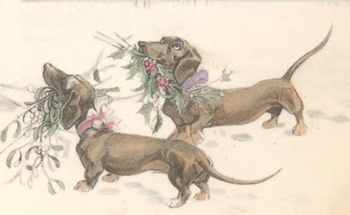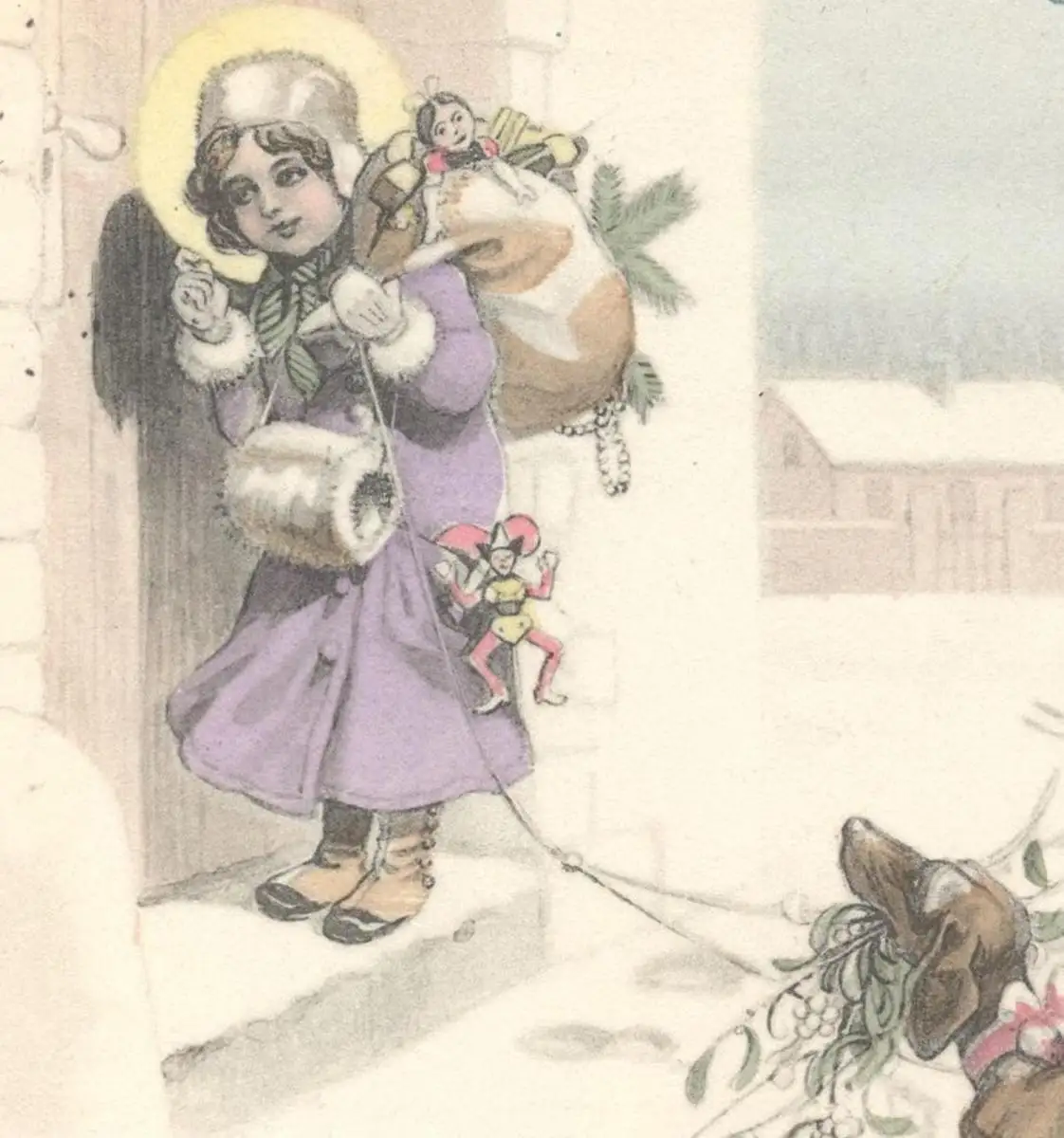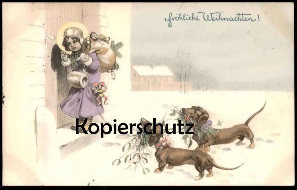 ALTE POSTKARTE FRÖHLICHE WEIHNACHTEN CHRISTKIND MIT DACKEL Nikolaus teckel basset dachshund christmas noel chien dog cpa