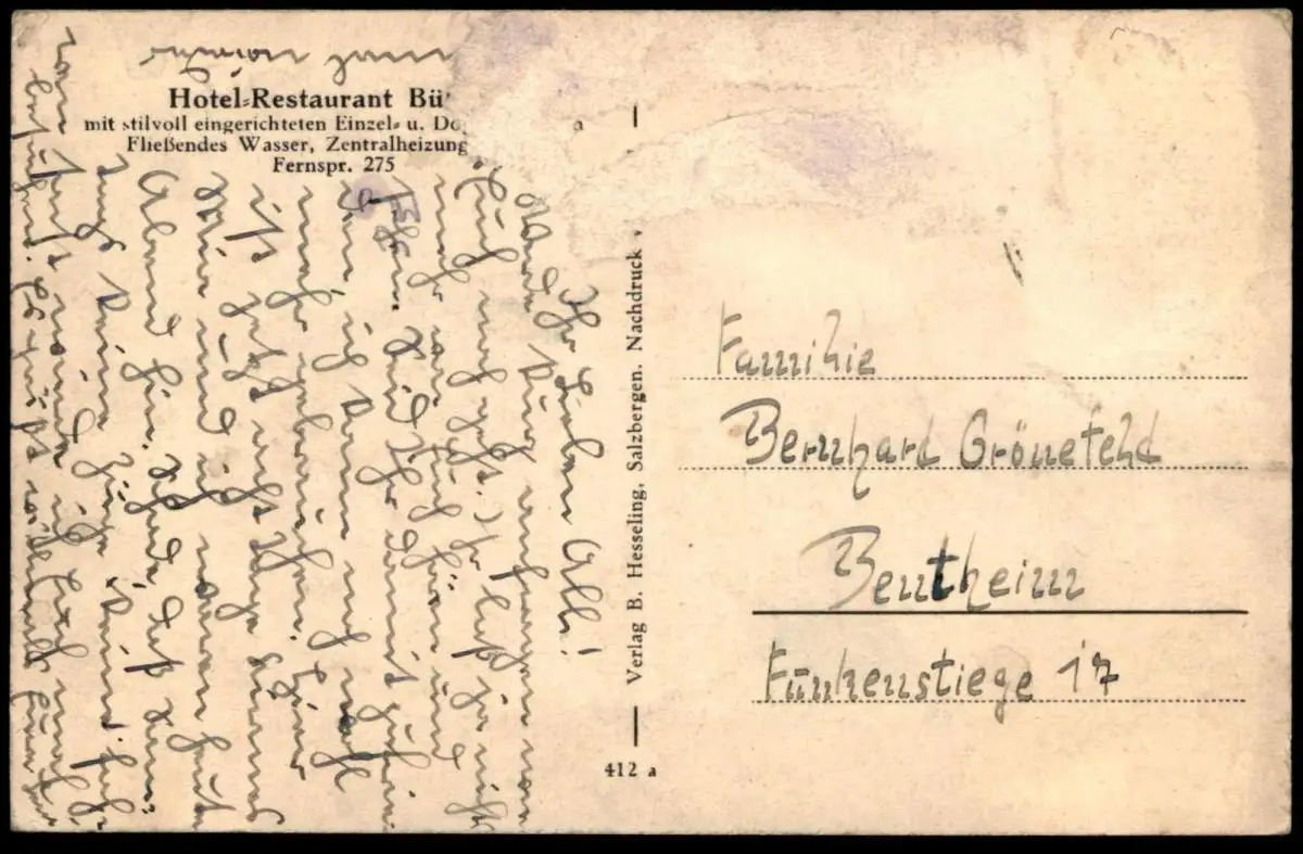 Verlag: B. Hesseling, SalzbergenGelaufen: xx.xx.193x nach Bentheim, Briefmarke mit etwas Spuren entferntErhaltung (s. Scan): gut / 918327