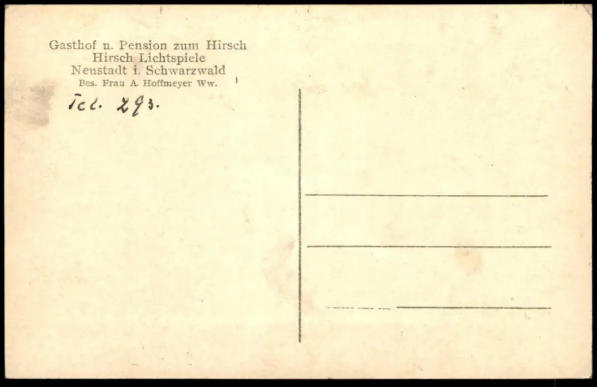 ALTE POSTKARTE GASTHOF ZUM HIRSCH LICHTSPIELE NEUSTADT BES. A. HOFFMEYER WW. Pension Titisee Ansichtskarte postcard cpa