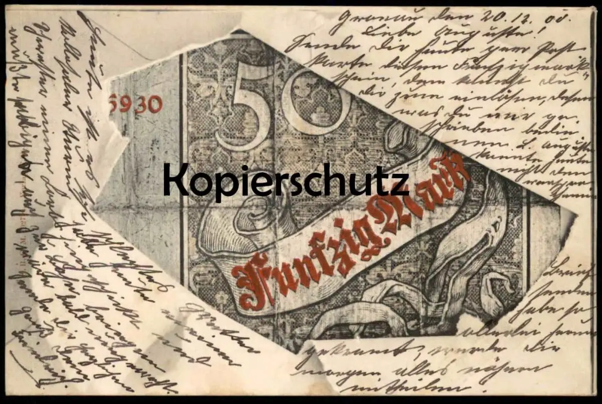 ALTE POSTKARTE GELDSCHEIN 50 MARK REICHSKASSENSCHEIN um 1882