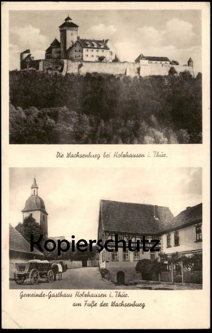 ALTE POSTKARTE GEMEINDE-GASTHAUS AM FUSSE DER WACHSENBURG BEI HOLZHAUSEN IN THÜRINGEN