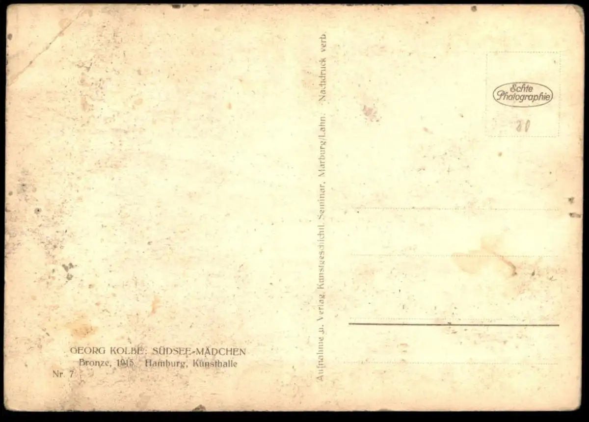 ALTE POSTKARTE GEORG KOLBE SÜDSEE MÄDCHEN BRONZE 1915 HAMBURG KUNSTHALLE SKULPTUR PLASTIK Verlag Marburg woman postcard