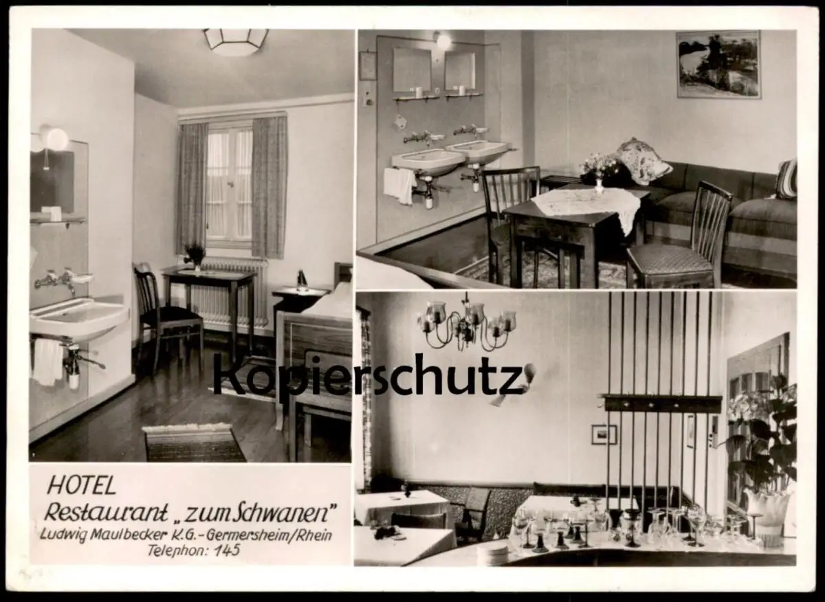 ALTE POSTKARTE GERMERSHEIM AM RHEIN PFALZ HOTEL RESTAURANT ZUM SCHWANEN LUDWIG MAULBECKER Ansichtskarte AK cpa postcard
