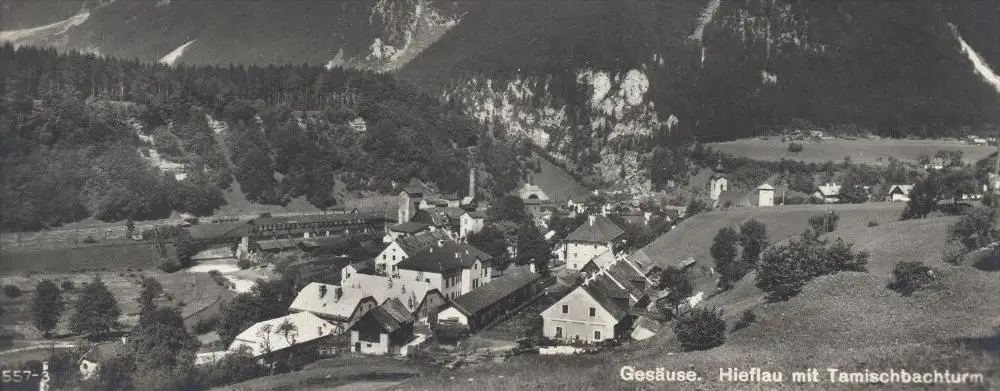 ALTE POSTKARTE GESÄUSE HIEFLAU MIT TAMISCHBACHTURM