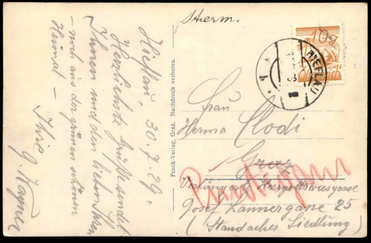 Gelaufen: 30.07.1929 mit Stempel Hieflau nach GrazErhaltung (s. Scan): gut / 917613