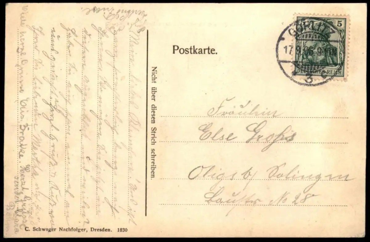 Gelaufen: 17.09.1906 mit Stempel Görlitz nach Ohligs