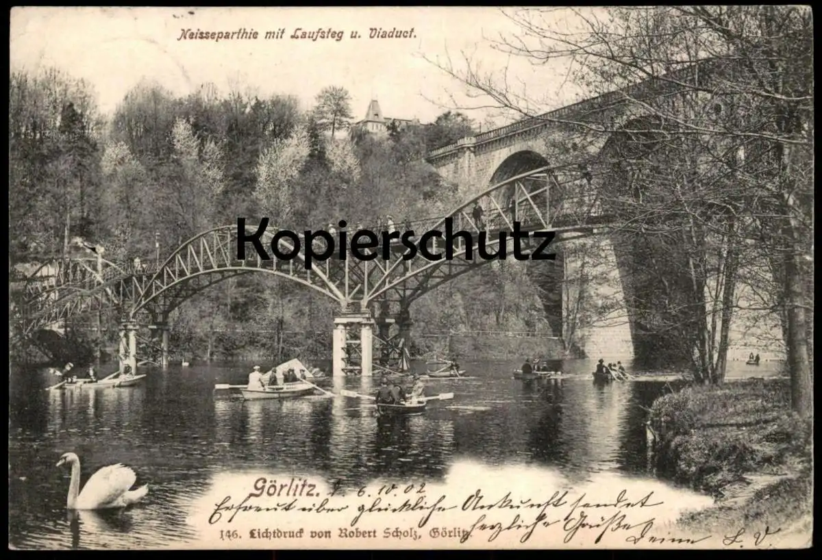 ALTE POSTKARTE GÖRLITZ NEISSEPARTHIE MIT LAUFSTEG UND VIADUCT NEISSE-VIADUKT Zgorzelec Zhorjelc Ansichtskarte postcard