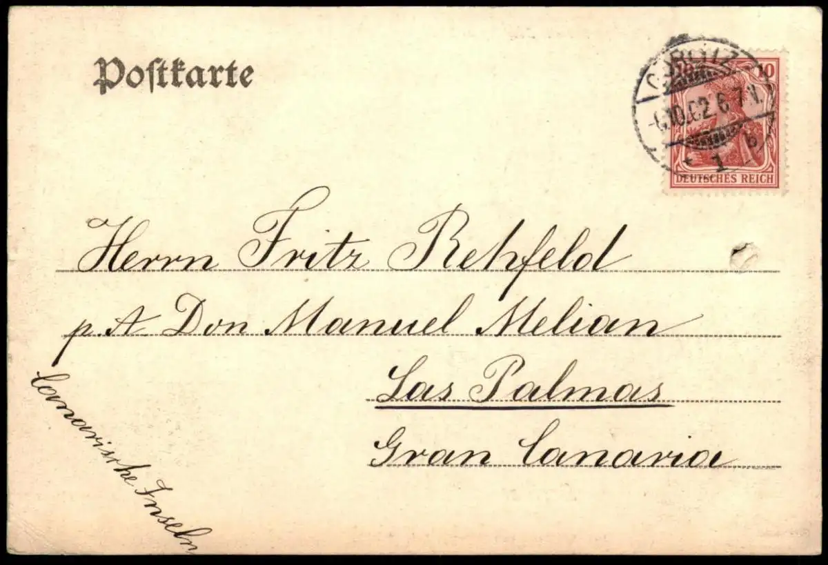Gelaufen: 04.10.1902 mit Stempel Görlitz nach Las Palmas Gran Canaria