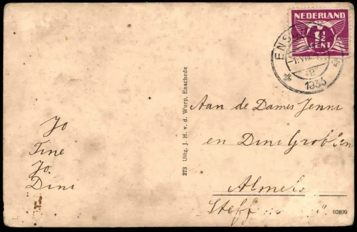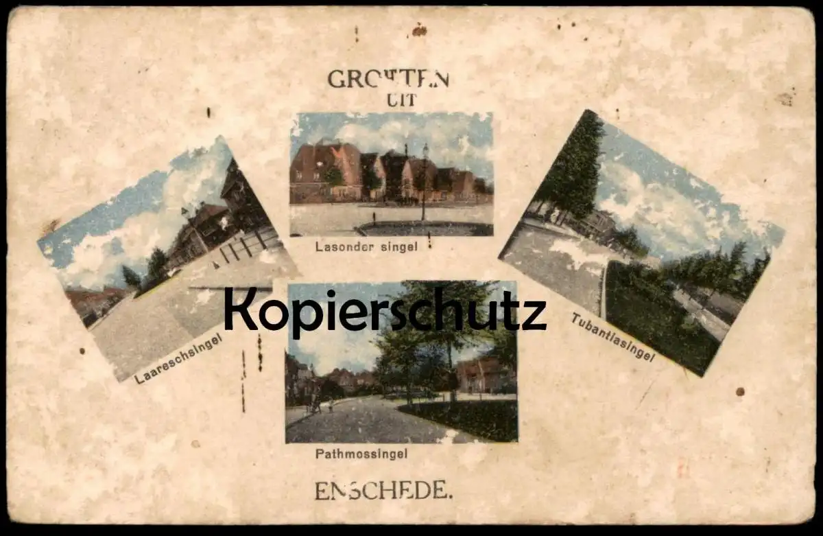 ALTE POSTKARTE GROETEN UIT ENSCHEDE PATHMOSSINGEL TUBANTIASINGEL LASONDER SINGEL LAARESCHSINGELVerlag: J. H. V. D. WURP, Enschede