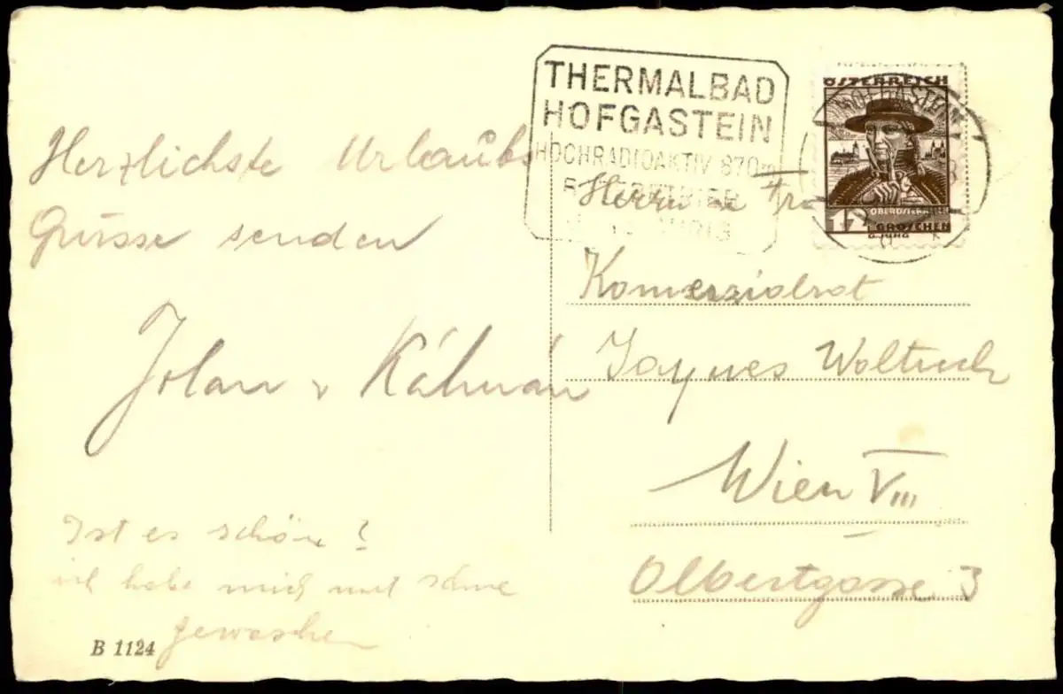 Gelaufen: 19.04.193x mit Stempel Bad Gastein nach Wien VIII