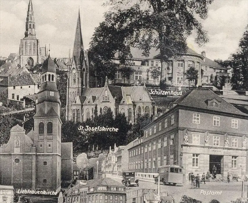 ALTE POSTKARTE GRUSS AUS BOCHOLT 1937 POSTAMT RAVARDITOR AAPARTIE SCHÜTZENHAUS JOSEFSKIRCHE KOLPING DENKMAL AMTSGERICHT