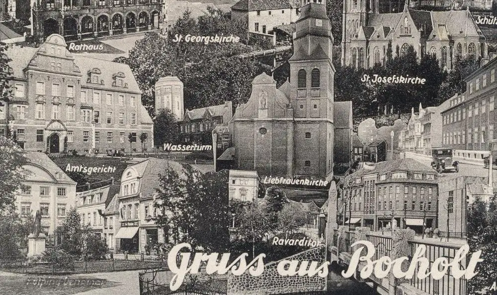 ALTE POSTKARTE GRUSS AUS BOCHOLT POSTAMT RAVARDITOR AAPARTIE SCHÜTZENHAUS RATHAUS LIEBFRAUENKIRCHE WASSERTURM ST. GEORGSKIRCHE ST. JOSEFSKIRCHE KOLPING DENKMAL AMTSGERICHT