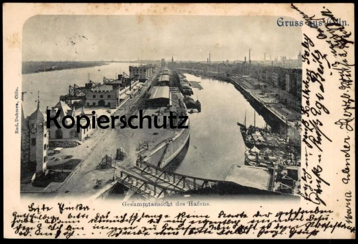 ALTE POSTKARTE GRUSS AUS CÖLN AM RHEIN 1898 GESAMMTANSICHT DES HAFENS RHEINAUHAFEN Köln Gesamtansicht Ansichtskarte cpa