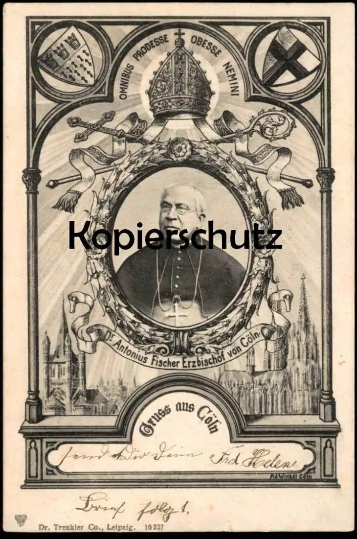 ALTE POSTKARTE GRUSS AUS CÖLN DR. ANTONIUS FISCHER ERZBISCHOF KÖLN OMNIBUS PRODESSE OBESSE NEMINI