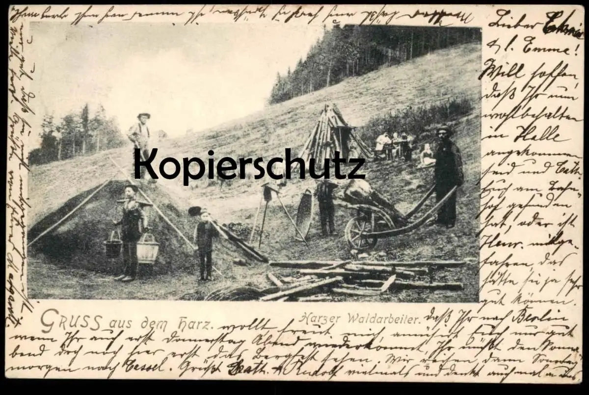 ALTE POSTKARTE GRUSS AUS DEM HARZ KÖHLERHÜTTE HARZER WALDARBEITER Köhler Charburner Charbonnier Koehler Hochharz AK