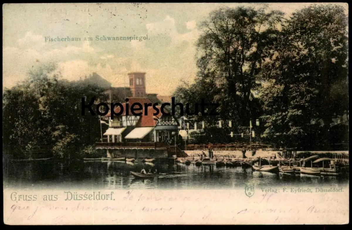 ALTE POSTKARTE GRUSS AUS DÜSSELDORF FISCHERHAUS AM SCHWANENSPIEGELVerlag: F. Eyfriedt, Düsseldorf
