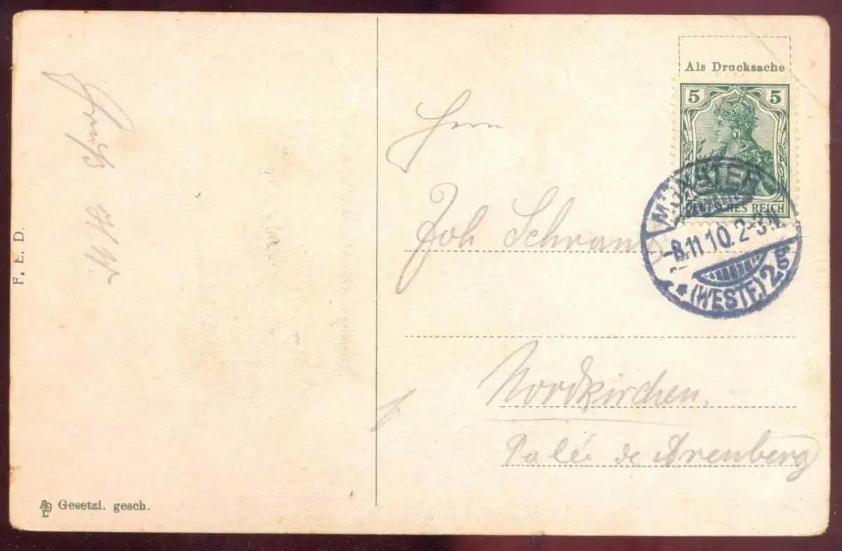 Gelaufen: 08.11.1910 mit Stempel Münster nach Nordkirchen