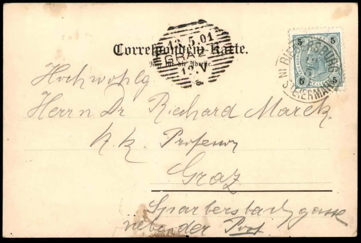 Gelaufen: 12.05.1901 mit Stempel Riegersburg Steiermark nach Graz, Ankunftsstempel Graz 13.05.1901
