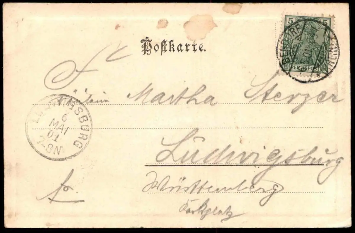 Gelaufen: 06.05.1901 mit Stempel Bendorf nach Ludwigsburg