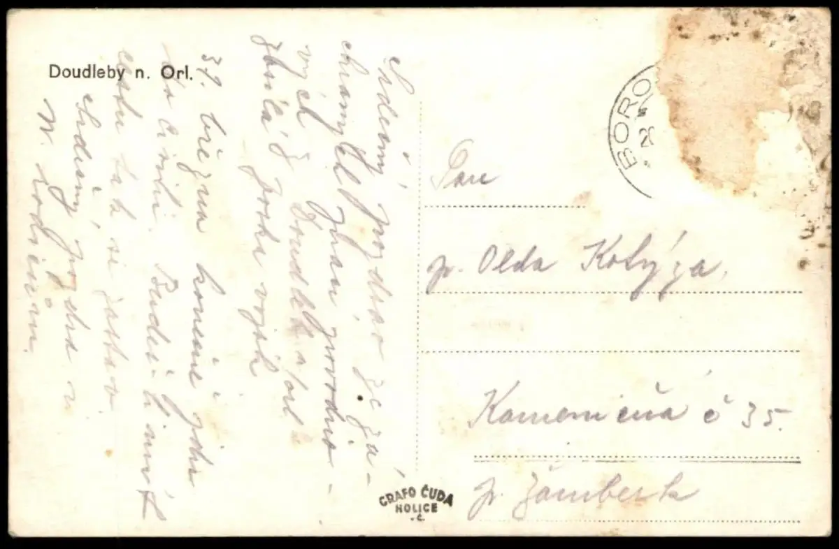 Gelaufen: 31.08.19xx mit Stempel Hirschberg Böhmen nach Vysoke Myto