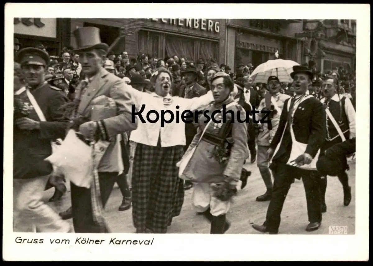 ALTE POSTKARTE GRUSS VOM KÖLNER KARNEVAL KÖLN links Gaffel Brauhaus, danach Bier- & Weinhaus Rechenberg sowie daneben Konditorei-CaféVerlag: Jos. Kessel, Niederdollendorf bei Bonn