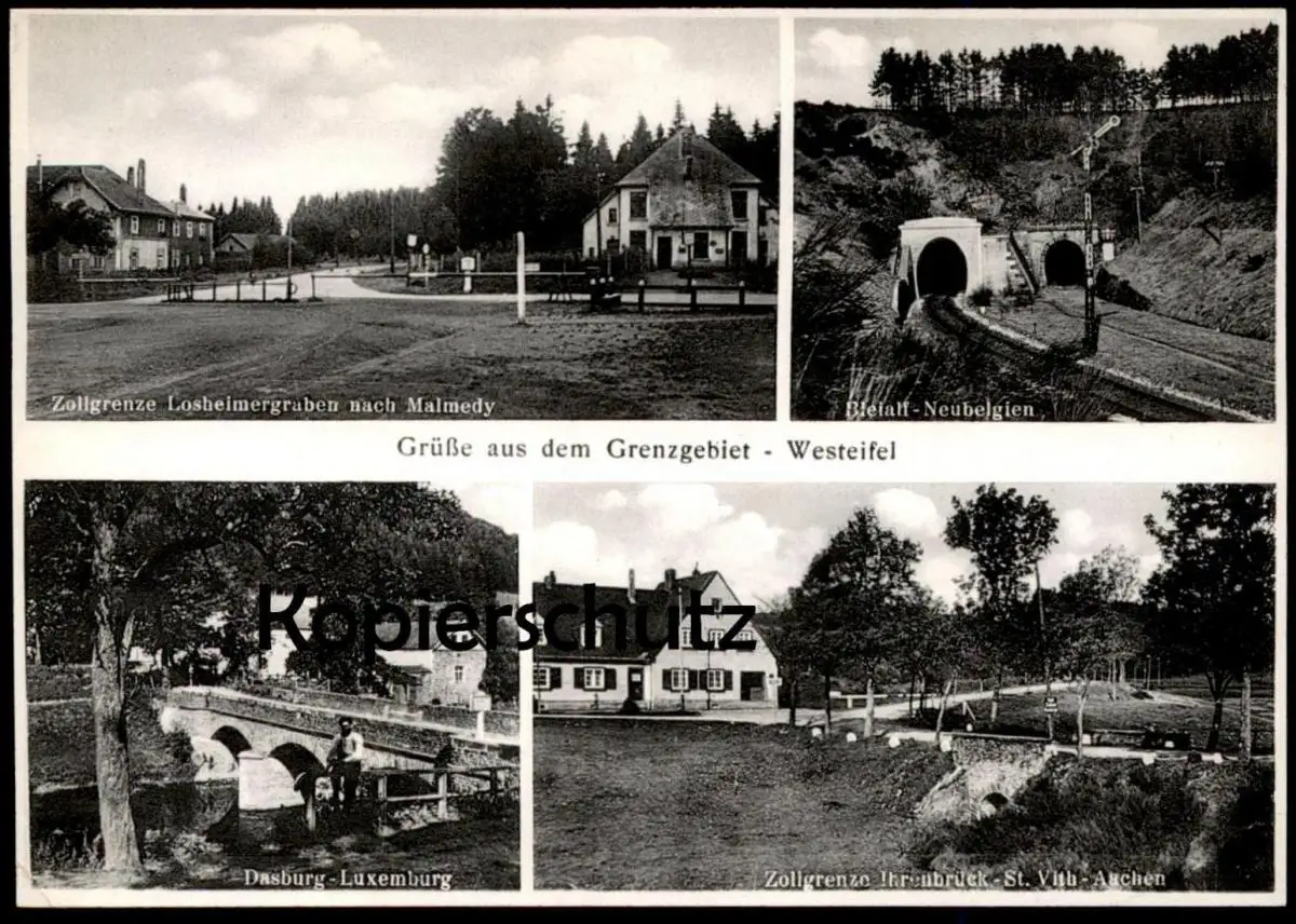 ALTE POSTKARTE GRÜSSE AUS DEM GRENZGEBIET WESTEIFEL DASBURG LUXEMBURG ZOLLGRENZE LOSHEIMERGRABEN NACH MALMEDY BLEIALF NEUBELGIEN ZOLLGRENZE IHRENBRÜCK ST. VITH AACHENVerlag: Photo-Pfingstmann, Prüm
