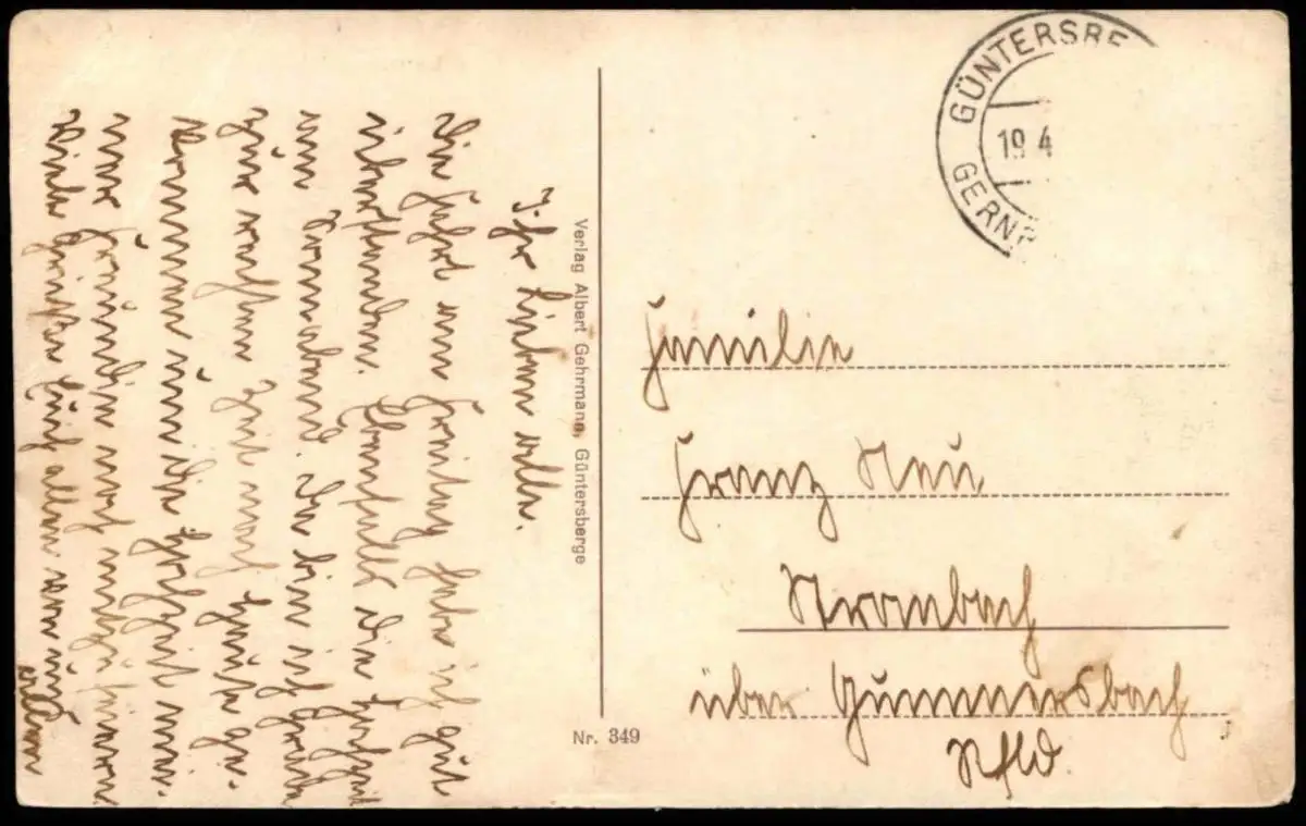 Gelaufen: 19.04.19xx mit Stempel Güntersberge nach Strombach über Gummersbach