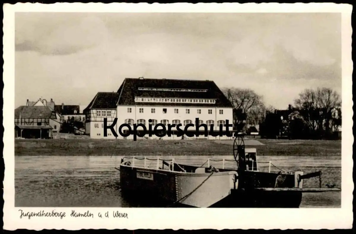 ALTE POSTKARTE HAMELN JUGENDHERBERGE MIT FÄHRE HAMELN BOOT SCHIFF ship ferry Ansichtskarte postcard AK cpa