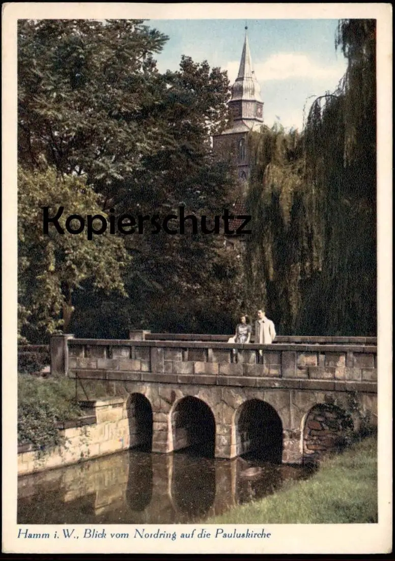 ALTE POSTKARTE HAMM IN WESTFALEN BLICK VOM NORDRING AUF DIE PAULUSKIRCHE Brücke Paar Kirche Ansichtskarte postcard cpa
