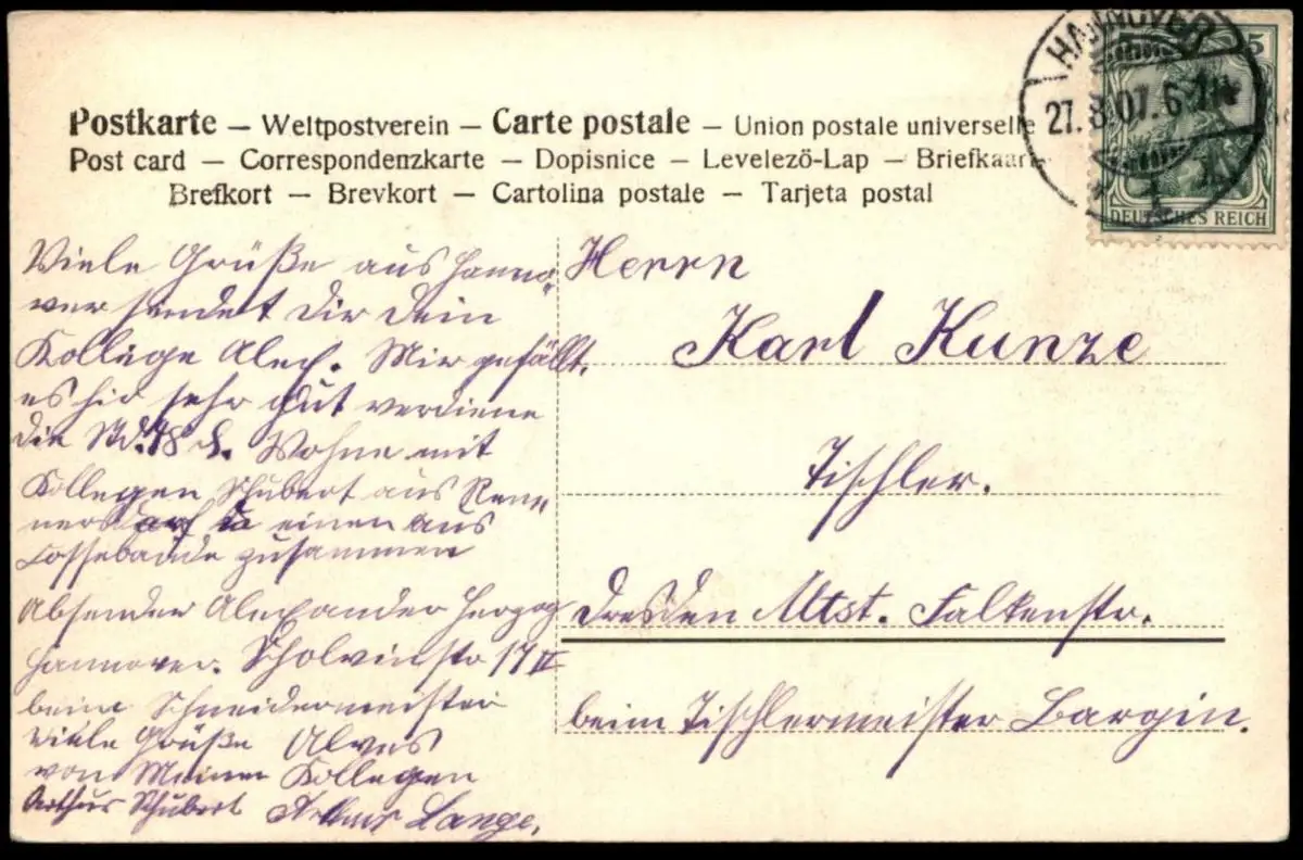Verlag: unbekanntGelaufen: 27.08.1907 mit Stempel Hannover nach DresdenErhaltung (s. Scan): gut, vorderseitig oben links leichte Tintenverfärbung / 916149