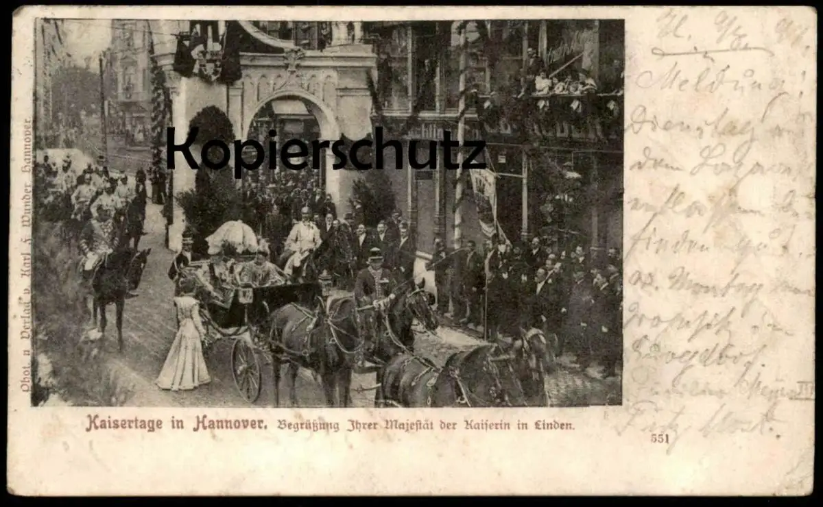 ALTE POSTKARTE HANNOVER LINDEN KAISERTAGE BEGRÜSSUNG KAISERIN KAISER KUTSCHE coach Ansichtskarte AK cpa postcard