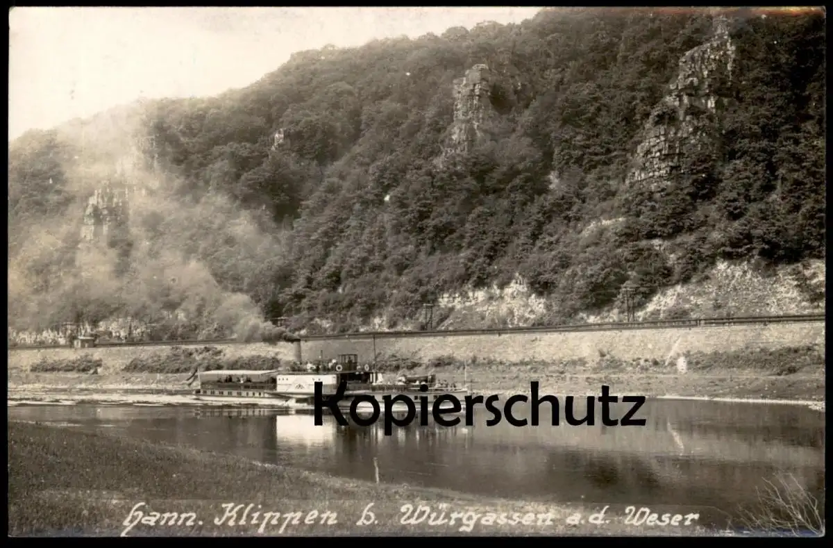 ALTE POSTKARTE HANNOVERSCHE KLIPPEN BEI WÜRGASSEN AN DER WESER BEVERUNGEN DAMPFER SCHIFF Ansichtskarte AK cpa postcard