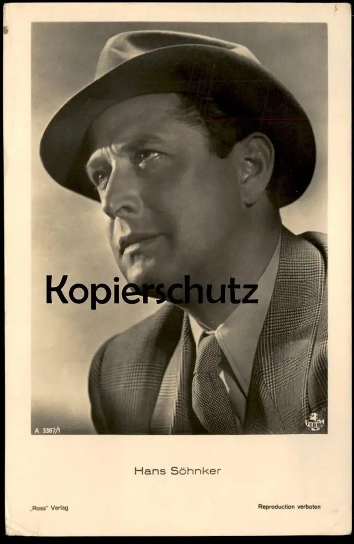 ALTE POSTKARTE HANS SÖHNKER FILM-SCHAUSPIELER ROSS VERLAG TERRA HUT ANZUG actor postcard Ansichtskarte