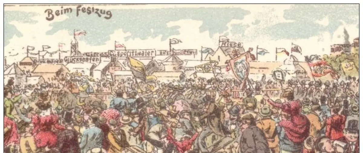 ALTE LITHO-POSTKARTE HEIDELBERG GRUSS VON DER HEIDELBERGER MESSE BEIM FESTZUG