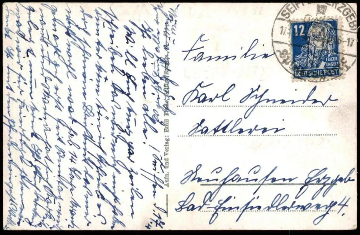 Gelaufen: 17.11.1956 mit Stempel Seiffen nach Neuhausen Erzgebirge