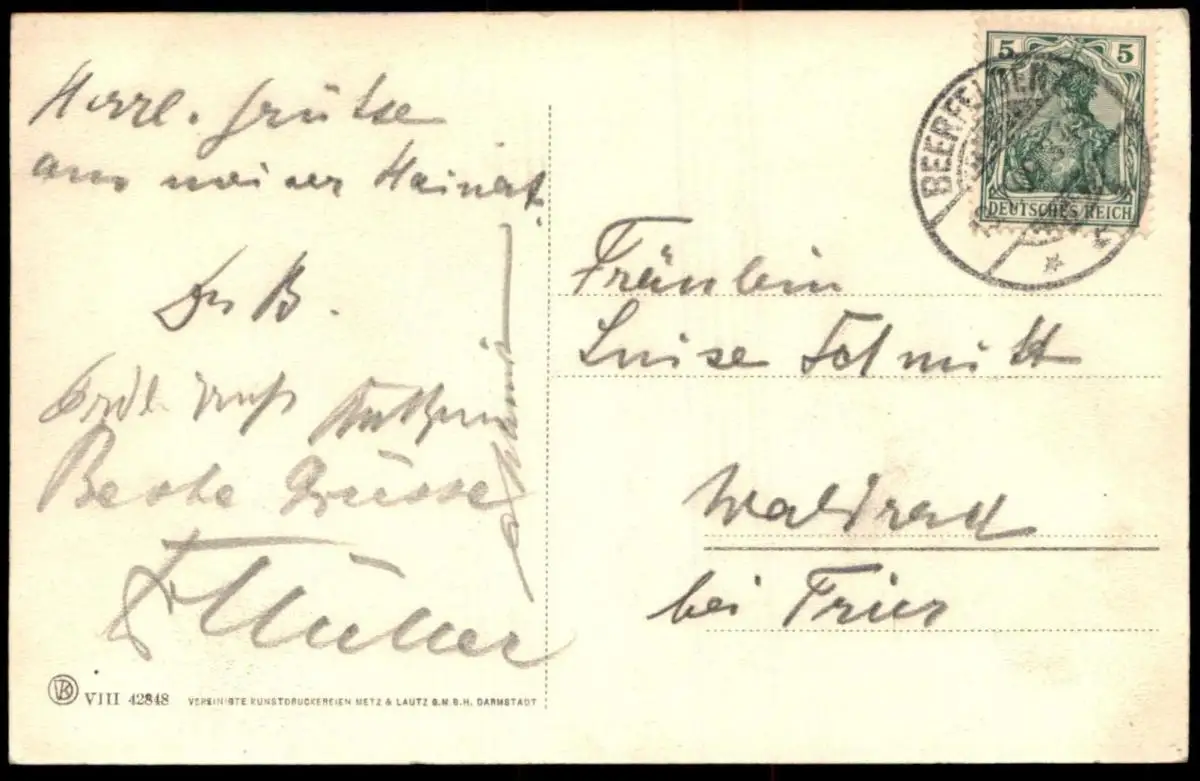 Gelaufen: 19.07.1909 mit Stempel Beerfelden nach Waldrach bei TrierErhaltung (s. Scan): gut - sehr gut / 916155