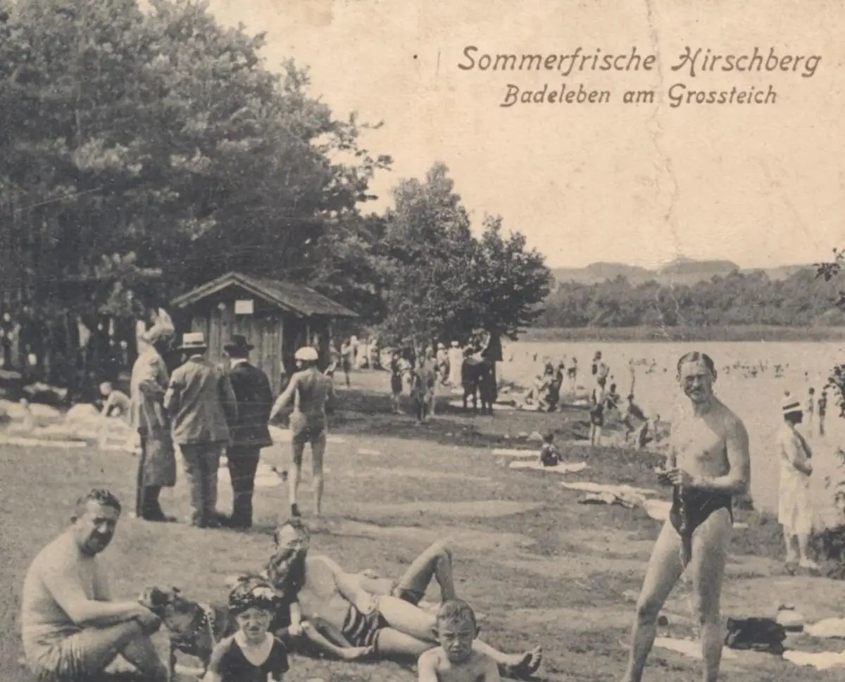 ALTE POSTKARTE HIRSCHBERG BADELEBEN AM GROSSTEICHVerlag: Ernst Böhm, Drogerie Hirschberg / Johannes Leonhardt, Dresden